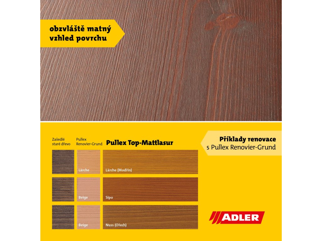 OUTLET - Adler PULLEX RENOVIER-GRUND (Renovační základní nátěr na dřevo) modřín - lärche 0,75L + dárek k objednávce nad 1000Kč
