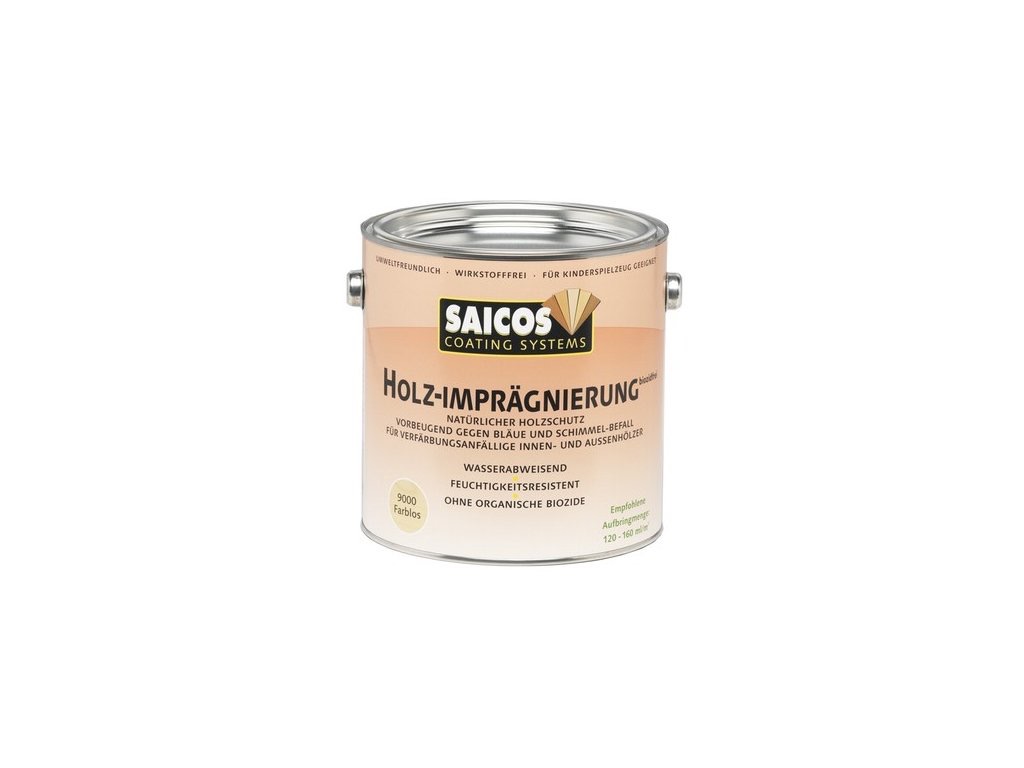 Saicos Impregnace dřeva bez biocidů 9000 je zdravotně nezávadný impregnační základ na bázi přírodních rostlinných surovin. Neobsahuje organické biocidy, přesto dřevo hluboce napouští, odpuzuje vodu a chrání před vlhkostním poškozením, zmodráním a plísněmi. Zachovává prodyšnost dřeva, snižuje bobtnání a smršťování a je ideální jako první nátěr do interiéru, zejména na jehličnaté dřeviny v koupelnách či kuchyních.